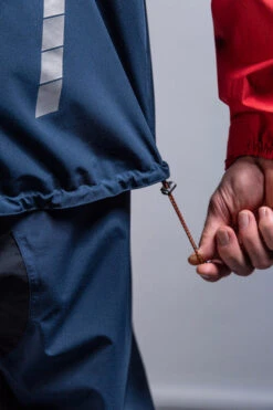 Die Jacke ist hinten länger geschnitten. Die Kapuze kann sowohl vorne als auch am Hinterkopf eingestellt werden, damit auch beim Drehen des Kopfes ein freies Sichtfeld gewährleistet ist. Unterarmreißverschlüsse sorgen bei Bedarf für zusätzliche Belüftung. Für gute Sichtbarkeit ist die Jacke mit einem reflektierenden Print auf der Rückseite versehen.